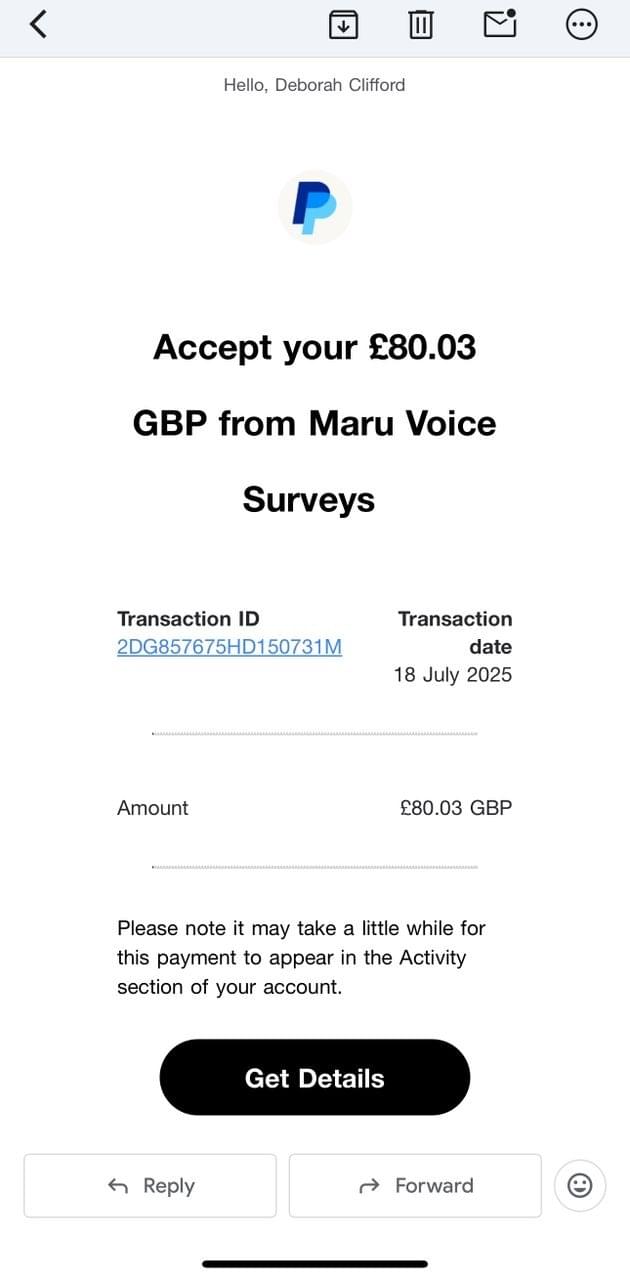 Thank you Maru, received a payment of £80.03 to my paypal.